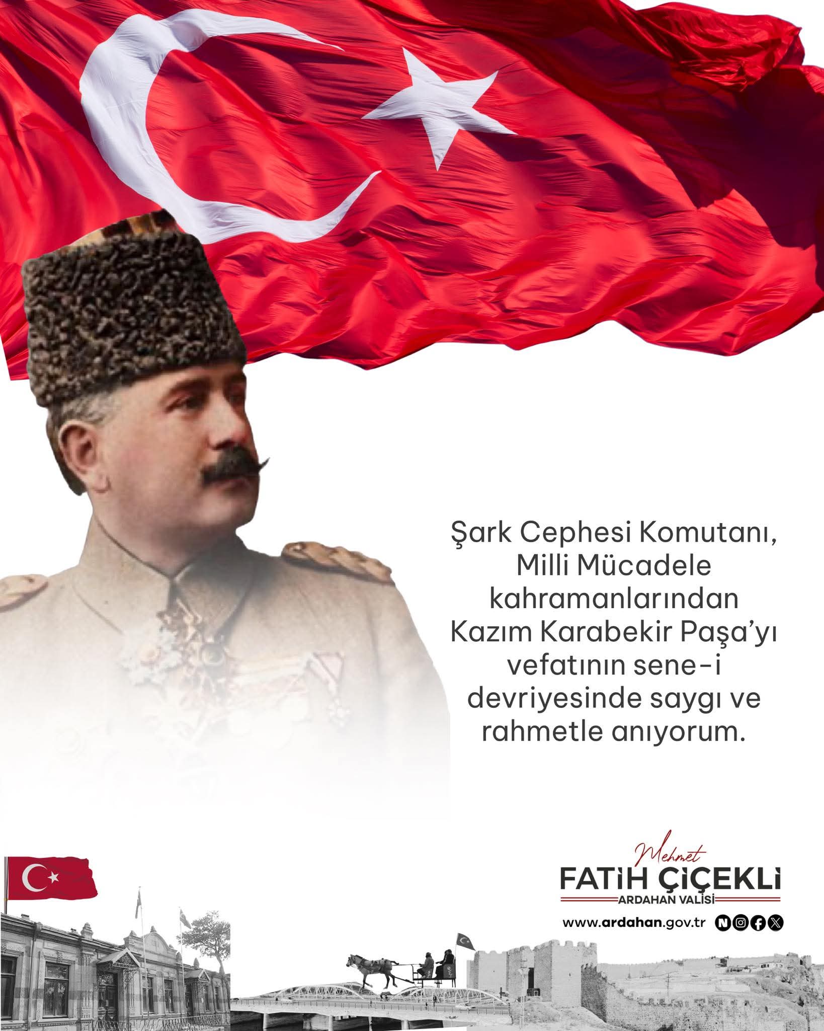 Şark Cephesi Komutanı, Milli Mücadele kahramanlarından Kazım Karabekir Paşa’yı vefatının sene-i devriyesinde saygı ve rahmetle anıyorum. MEHMET FATİH ÇİÇEKLİ ARDAHAN VALİSİ