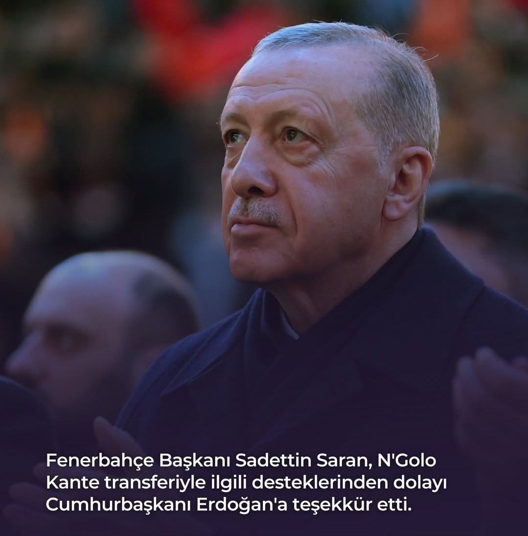 Fenerbahçe'den Başkan Recep Tayyip Erdoğan'a transfer teşekkürü geldi. Sarı-lacivertli kulübün başkanı Sadettin Saran, N'Golo Kante transferinin çözümünde etkili olan Başkan Recep Tayyip Erdoğan'a teşekkür etti. İşte o sözler: "CUMHURBAŞKANIMIZA DESTEĞİ İÇİN TEŞEKKÜRLER" Fenerbahçe Başkanı Sadettin Saran: Kulübümüz, dünya futbolunun önemli isimlerinden N'Golo Kanté'nin transfer sürecini başarıyla tamamlamıştır. Cumhurbaşkanımız Sayın Recep Tayyip Erdoğan'a, hem Fenerbahçemizin hem de Türk futbolunun gelişimine katkı sağlayacak bu sürecin olumlu şekilde neticelenmesi noktasında verdikleri önemli destekler dolayısıyla, şahsım ve kulübüm adına teşekkürlerimi sunarım. Bilinmelidir ki bu süreç boyunca büyük Fenerbahçe taraftarının kulübüne olan inancı, gösterdiği güçlü destek ve yanımızda hissettirdiği güven, bizler için en büyük motivasyon ve güç kaynağı olmuştur. Şimdi o gücü sahaya taşıma, takımımızın yanında olma zamanı. Birlikte inanacak, birlikte mücadele edecek ve birlikte başaracağız.